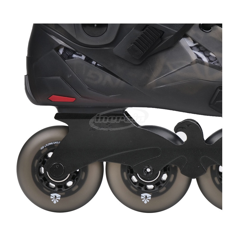 چکمه نیمه شفاف سفید یا مشکی که با چند ورودی هوا با رنگ چکمه مطابقت دارد. به لطف ارگونومی و طراحی خوب، به راحتی با هر نوع پا سازگار می شود. با محافظ کناری قابل تعویض / لغزنده و نصب 165 میلی متری. قاب تخت با پیچ های متحرک. بسته شدن قابل تنظیم میلیمتری با محافظ سگک. آستر میکرو متخلخل بسیار تنفسی با روکش های نئوپرن و زبانه ای با لبه های مهر و موم شده برای تناسب و دوام بهتر. چرخ های سایه 80 میلی متری 88 آمپری پیشرفته. بلبرینگ Abec 7 608RS.